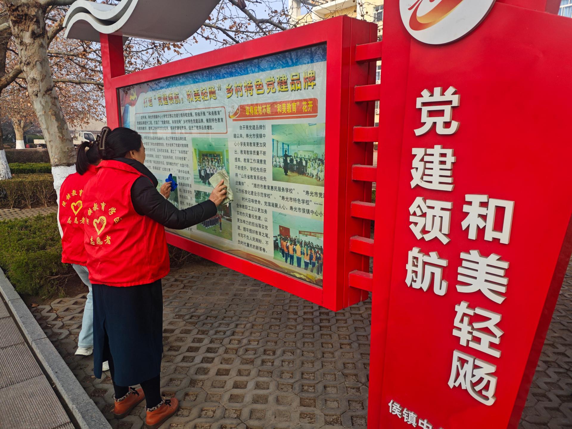 为深入践行“和美教育”理念,厚植清廉校园文化,充分发挥党员先锋模范作用,我校开展“清廉实干映初心 洁净校园践使命”志愿服务行动。活动中,党员教师志愿者们身着红马甲,化身校园“美容师”:细致清理绿化带杂草落叶与白色垃圾,精心擦拭宣传栏让党建知识与校园文化焕发光彩,耐心整理图书角为师生打造整洁有序的阅读空间。志愿者们以实际行动诠释责任担当,用清廉实干作风为校园添绿增美,为构建洁净优美、文明和谐的校园环境注入红色动能。