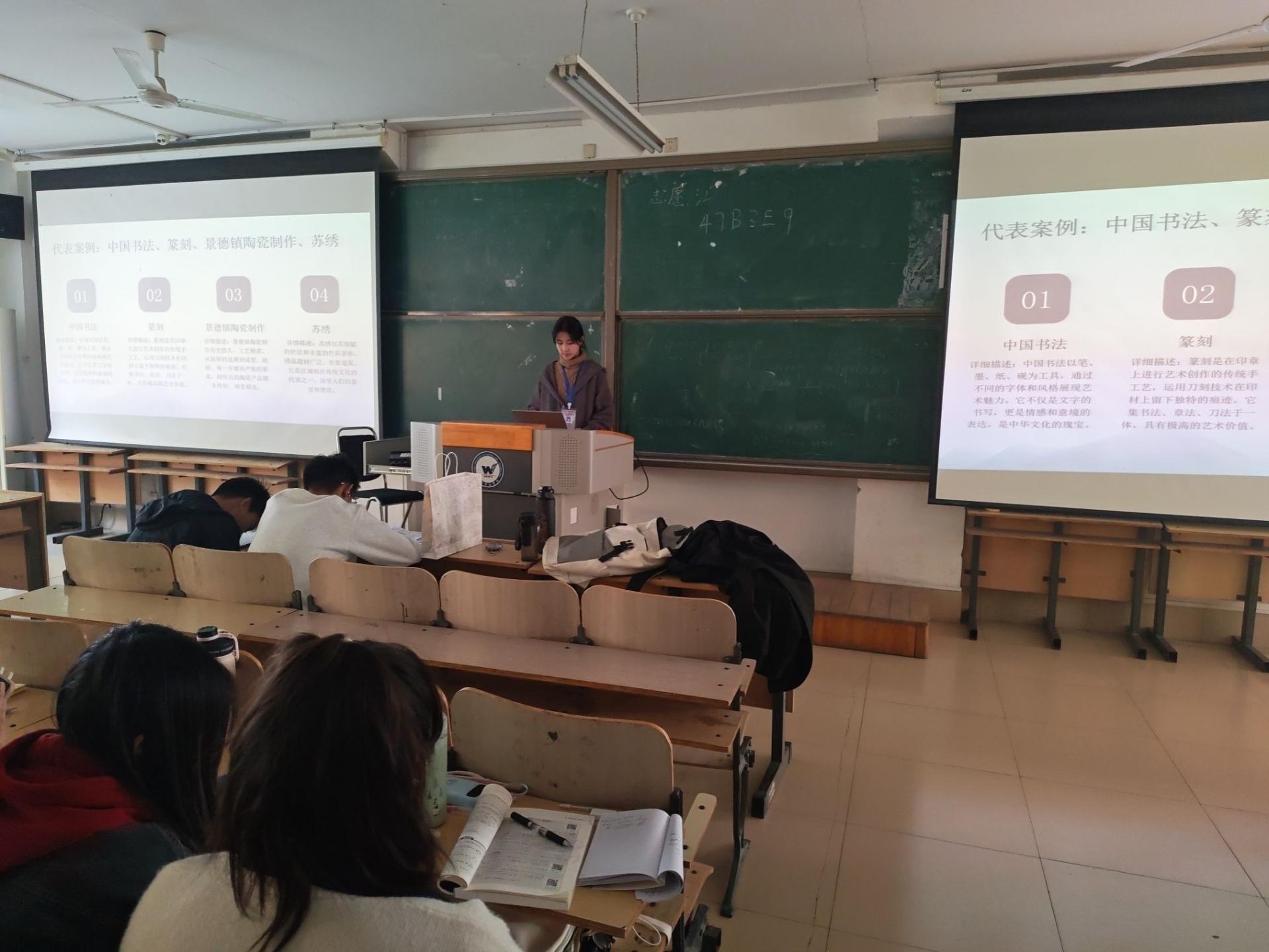 (1)活动开始前,志愿者们提前准备好对于大学生进行非遗传承宣讲的活动PPT介绍,还通过短视频进行热场。志愿者们通过情景剧以及各种形式,向大家展示我们非遗文化的魅力。(2)活动开始时,志愿者们通过生动形象的演讲进行非遗文化宣讲,在演讲过程中志愿者们提出一些问答知识进行非遗知识快问快答,同学们积极回答后有小礼品奖励。(3)为更好的宣传非遗传承精神,汇聚起传承之花,志愿者们给同学们下发粘土,红纸,剪刀等让同学们通过手工活动而进行非遗文化传承。(4)活动结束后,志愿者们有序带回。