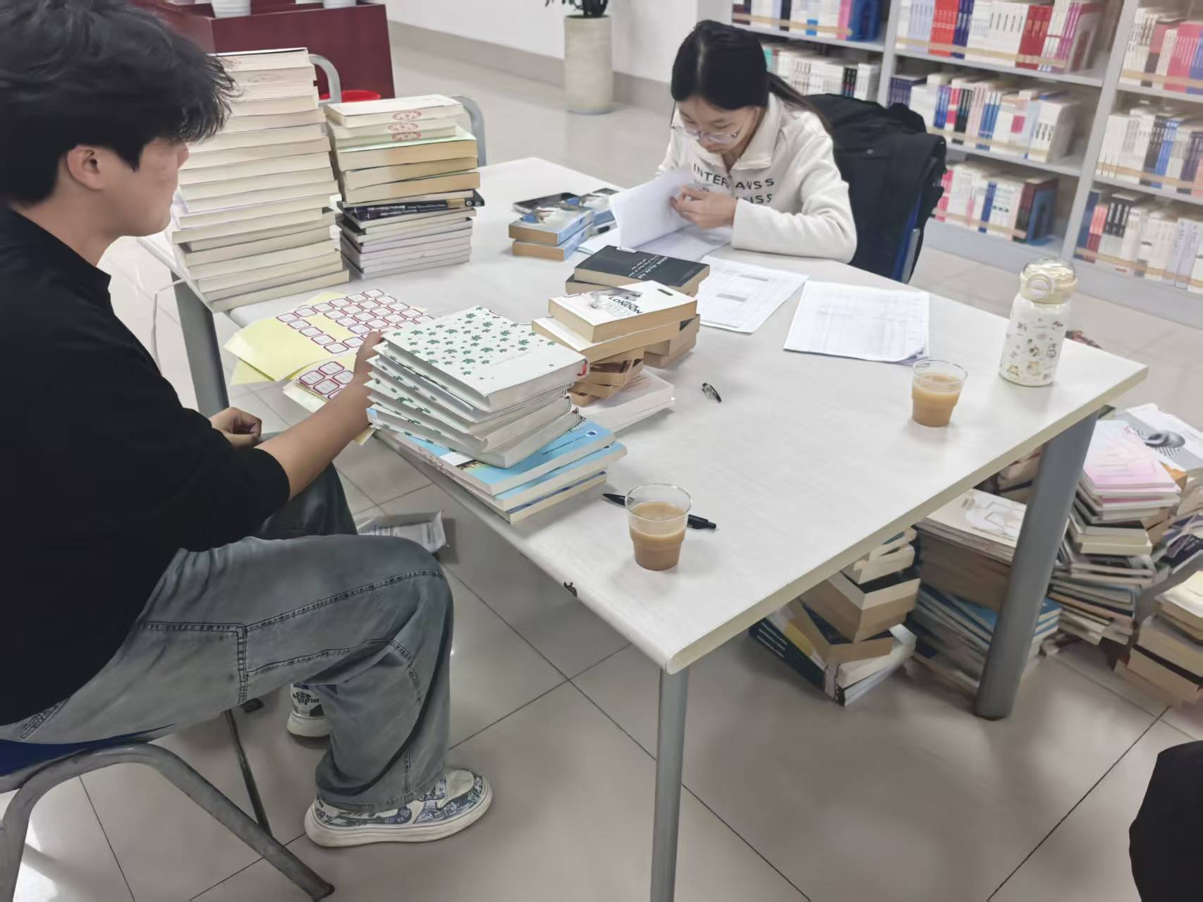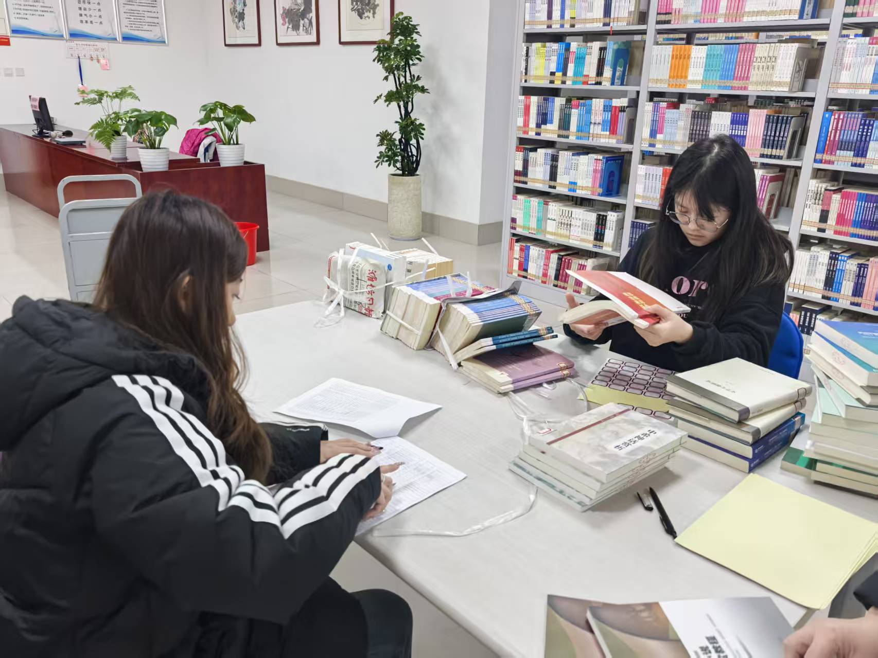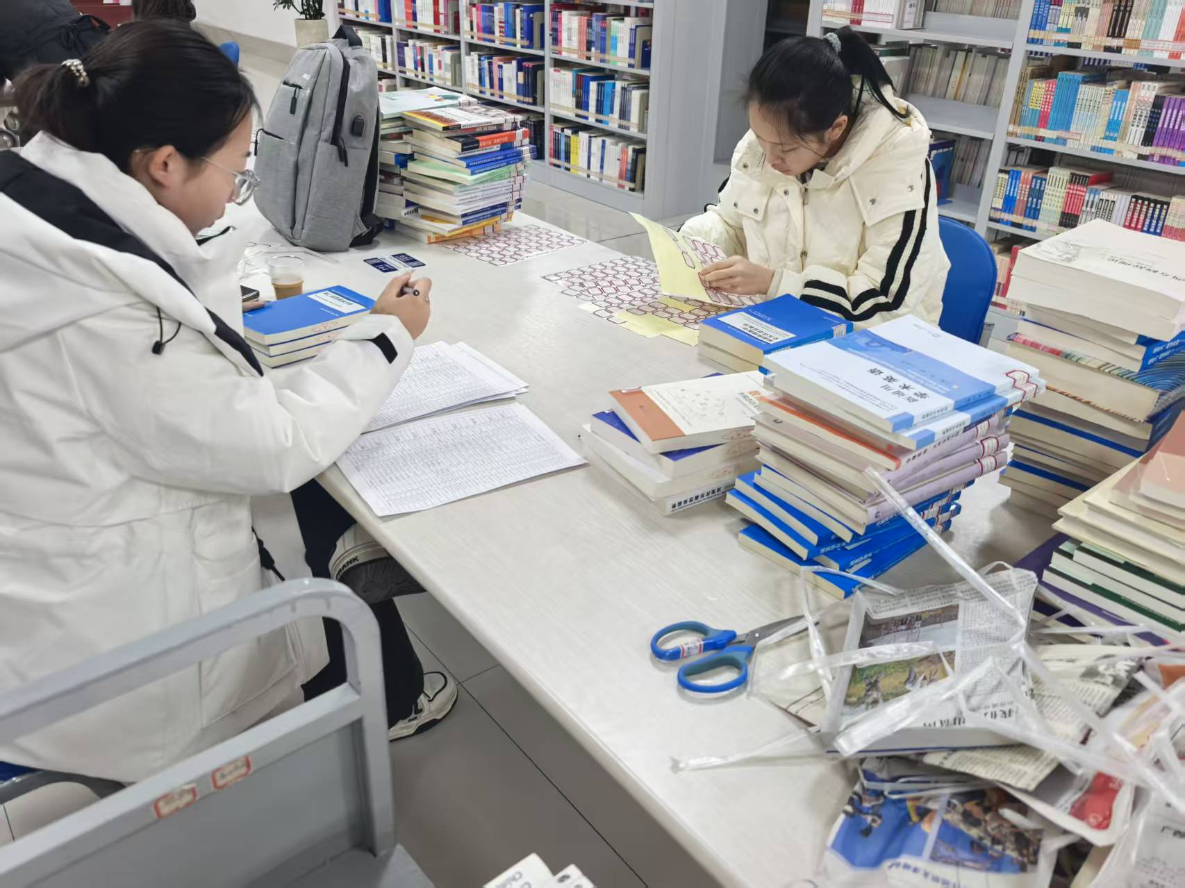 2025年12月28日下午14点,在潍坊科技学院图书馆进行书籍贴标覆膜活动,给图书馆内部分书籍贴标覆膜。