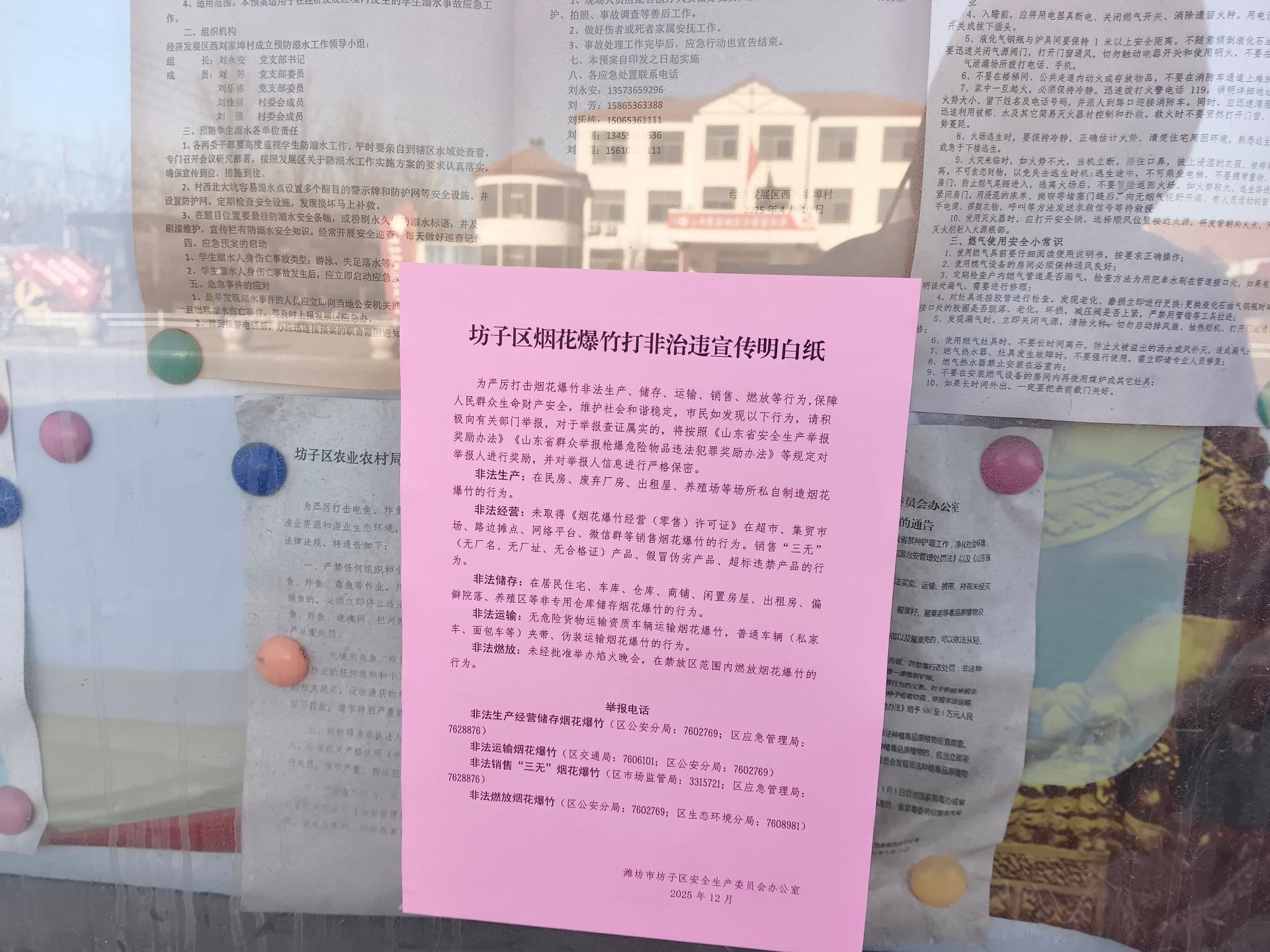 为严厉打击烟花爆竹非法生产、储存、运输、销售、燃放等行为,保障人民群众生命财产安全,维护社会和谐稳定,西刘家埠村组织村两委和新时代文明实践站志愿者,共同开展烟花爆竹打非治违宣传,通过张贴明白纸、微信发群、入户发放明白纸等方式。