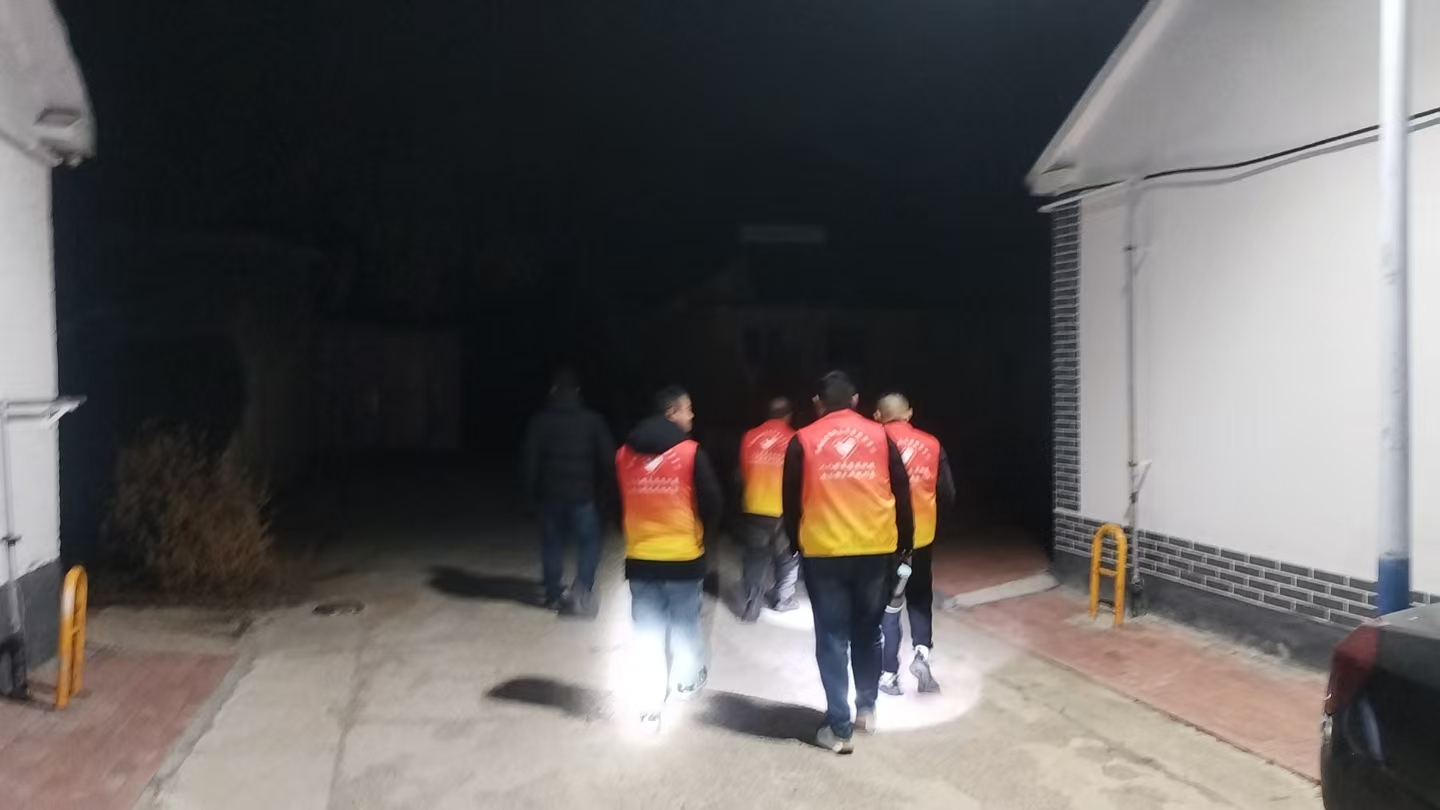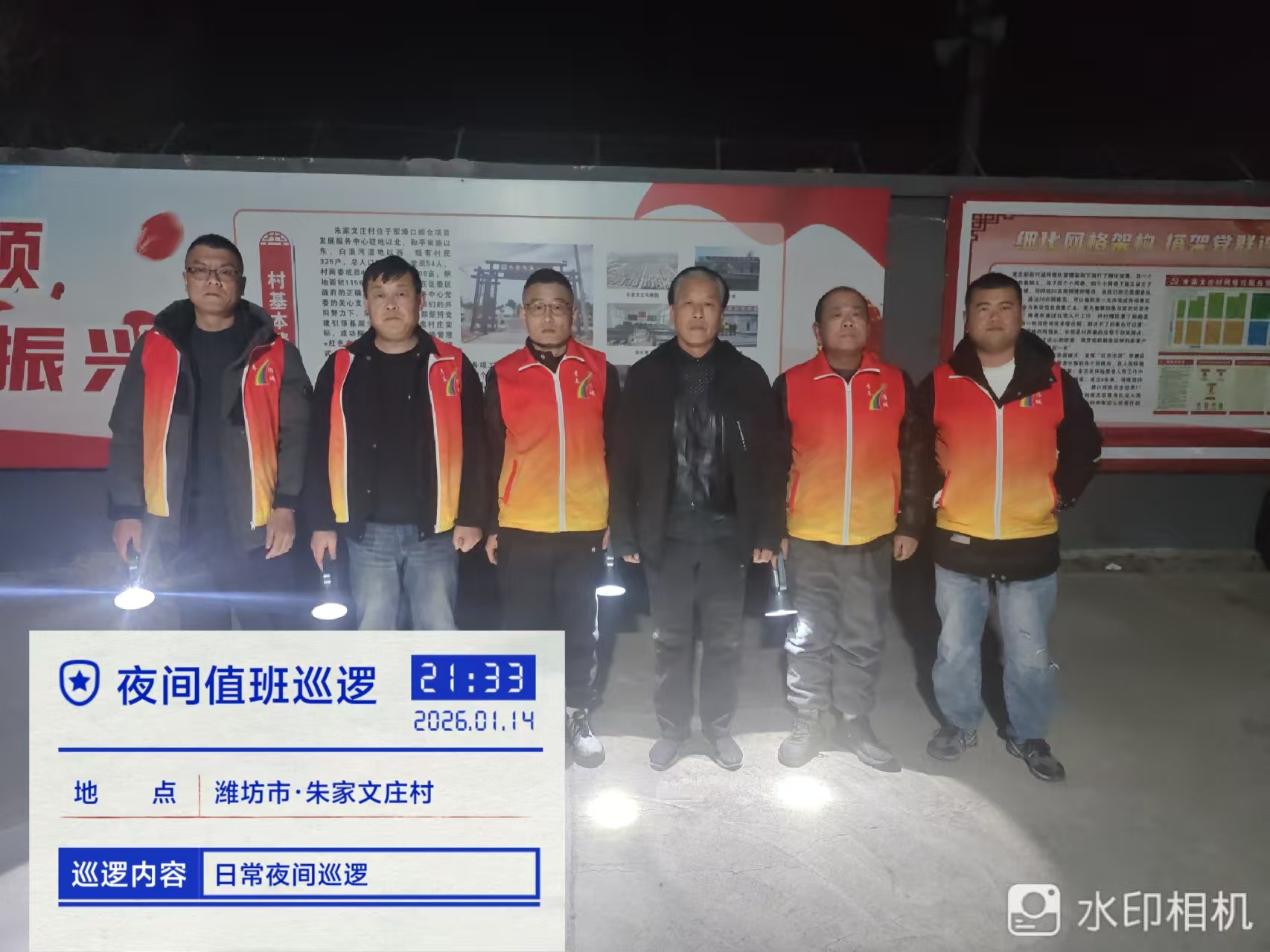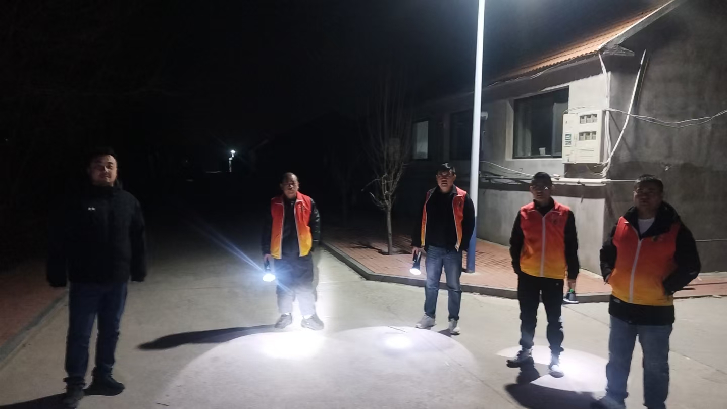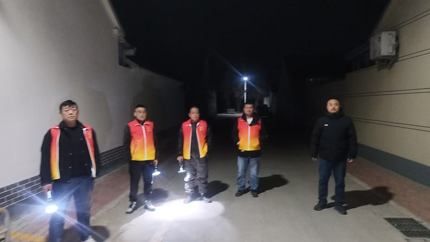 19:30-22:30朱家文庄村志愿服务队组织志愿者参与夜间值班巡逻活动,保障村民的财产和生命安全。